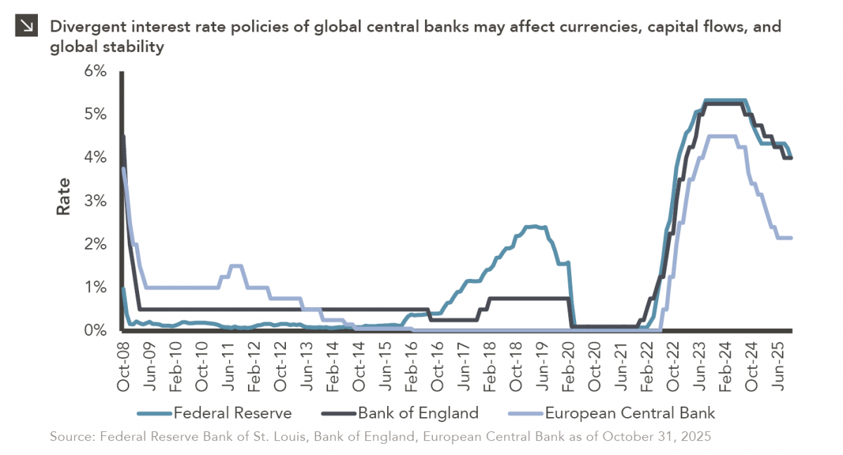 After a largely synchronized hiking cycle beginning in 2022, there has been a slight divergence in interest rate policies across…