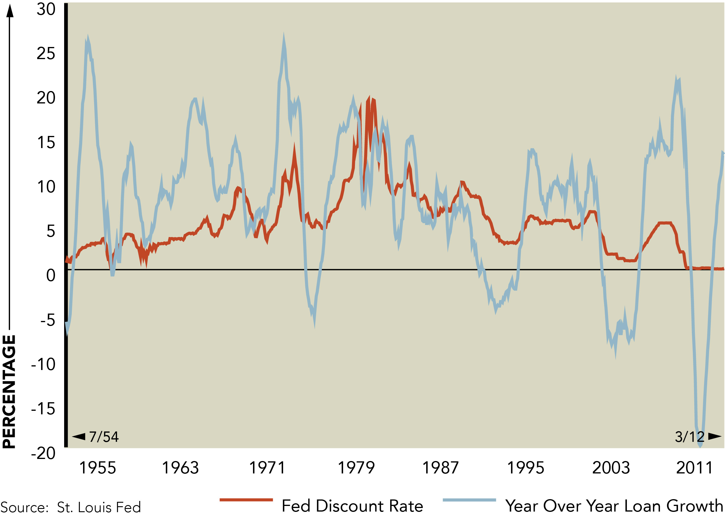 Since the 2008 recession began, the Federal Reserve has seemingly used all available tools to stimulate the economy. In particular, the Fed has relied heavily on controlling the Federal Funds Rate, which is the rate that the Fed charges banks for overnight loans. By keeping this discount rate low, the Fed can theoretically stimulate loan growth by making credit cheaper for banks to obtain.
